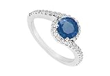 Sapphire and Diamond Engagement Ring : 14K White Gold - 0.75 CT TGW Size 14