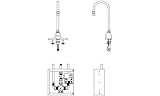 | ✚✚✚ Delta 3001T3439A Motion Activated Battery Powered Three Hole Electronic Bar / Prep Faucet wit 4", Chrome Motion Activated Battery Powered Three Hole Electronic Bar / Prep Faucet wit 4" Deck Plate Gooseneck Spout Vandal Resistant Aerator and Surface Mount Control Box with Thermostatic Mixing Valve from the Commercial Series H²OpticsTM technology- no external adjustments required Chrome plated one piece cast main body with integral sensor and FIXED spout Field adjustable water resistant program controller with LCD screen Controller retains adjusted settings in event of power failure Water flows when sensor is activated Water flow stops at the selected run-on time after user removes hands from sensing zone. Run-on time selections are 0 to 8 seconds or 1 to 8 minutes for scrub-up applications. Factory set to 0 seconds. Blocking time between uses has selectable range of 1 to 8 seconds. Factory set to 1 second. Adjustable response time. Auto shut-off feature. Optional metered program mode with selection of 7 to 240 seconds of continuous operation. Adjustable sensing distance of 76 to 381 mm (3" to 15"). Factory set to 254 mm (10") (+/- 1.0")
