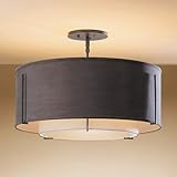 Are you looking for the best review for Hubbardton Forge Exos Medium Double Shade Semi-Flush Mount? Read customer review, features, specifications, description, check prices update and more satisfying for Hubbardton Forge Exos Medium Double Shade Semi-Flush Mount product reviews! 2008 design.Made in the U.S.A. by Hubbardton Forge.The layered Exos Medium Double Shade Semi-Flush makes a grand impression with it's layered dual drum shade and angular iron embellishments. Select from a range of neutral fabric outer shade colors over a Natural linen inner shade. Also available in a Small version. Direct wire only. Damp rated. Shown in Dark Smoke finish and Natural Linen/Eclipse shade.
