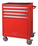 Westward 13H096 Rolling Cabinet, 26-13/16 x18-5/8 x39-7/8Rolling Tool Storage Cabinet, Width 26-13/16 In., Depth 18-5/8 In., Height 39-7/8 In., Caster Type (2) Stationary, (2) Swivel, Caster Size 5 x 1-1/4 In., Number of Drawers 4, Drawer Slides Ball Bearing, Drawer Capacity 100 lbs., Capacity per Wheel 275 lbs., Steel, 18 Gauge, Red, Flat Finish, Internal Keyed Lock, Includes Drawer Liners